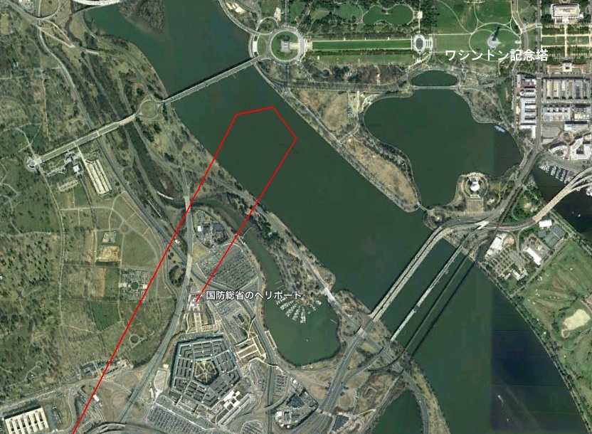 国防総省の西には幹線道路が走っています。ここを避けるように川の上に出れば、ほとんどが国防総省の要地の上を飛べます。ローターを傾けて、航空機モードになったのが川の上であったことは、ニュース映像から確認できます。海兵隊高官は「沖縄の普天間基地と似た状況を体験してもらうため」と説明したと言いますが、実に巧妙な嘘です。海兵隊は普天間基地でヘリコプターモードを使いたいのです。それならば、ワシントンの住宅地上空でヘリコプターモードで飛んでみせるべきです。