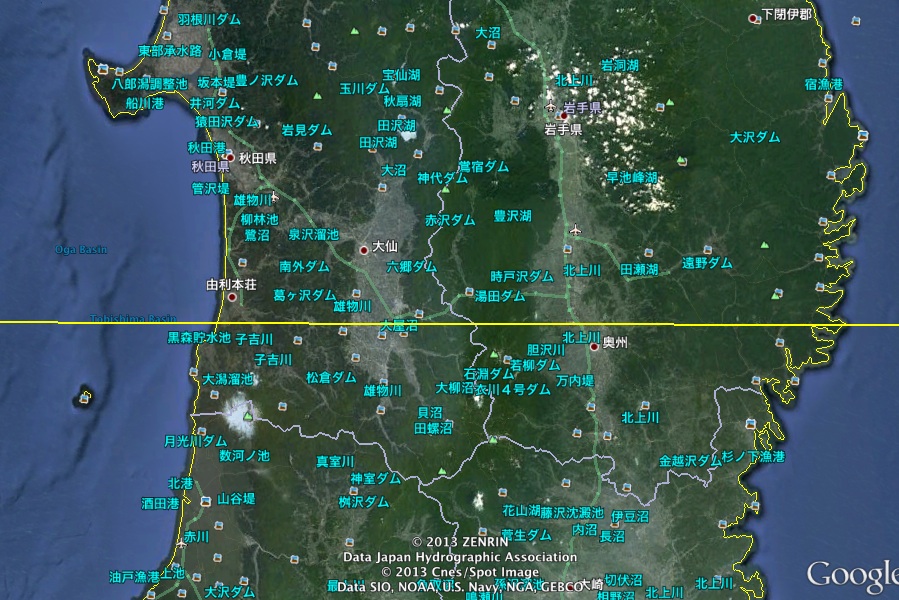 ソンドク飛行場に何が配備されているのかは明らかではありませんが、中距離ミサイルのノドン、長距離ミサイルのムスダンだったとして、その軌道を考えてみました。