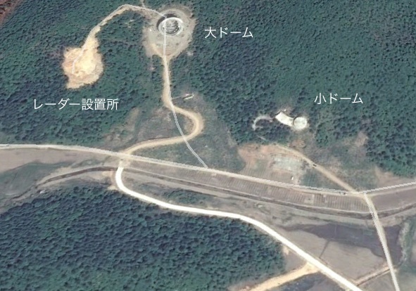 多分、ドーム型建物の大きな方は見学者のために造られたもので、小さな方は管理棟でしょう。大きなドームは、ロケットを追跡するレーダーを置く山にあり、発射台を視認できる位置にあります。大きなドームの西側にある木が生えていない場所がそれです。ドームから発射台まで、視線を遮るものはなく、木よりも高い位置に見学する場所があれば、発射台はよく見えるはずです。大きなドームへの道は幅が広く、傾斜が急にならないように大きくカーブしています。小さなドームへの道路は幅が狭く、一ヶ所を除いて直線です。つまり、大きなドームへの道路は快適にアクセスできるように造られています。これは身分の高い者が使うことを示しており、金正恩などが来訪することを前提としていると考えられます。