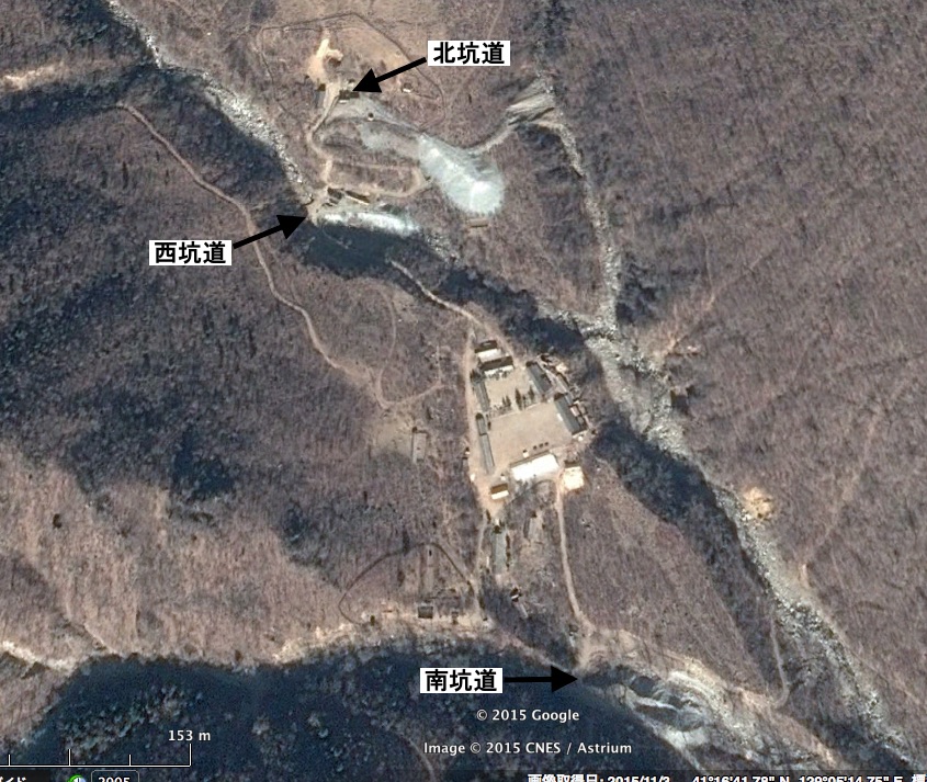 参考のために実験場の衛星写真を掲載しておきます。離れたところに東坑道もありますが、ずっと使われていません。