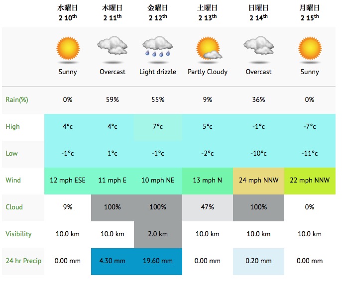 10日水曜日〜15日月曜日の天候