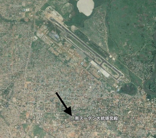 大統領宮殿も空港に近いのですが、それよりも近い場所で戦闘が起きた可能性があり、事態は非常に切迫していると思われます。空港と大統領宮殿の位置関係が分かるように航空写真を示します。