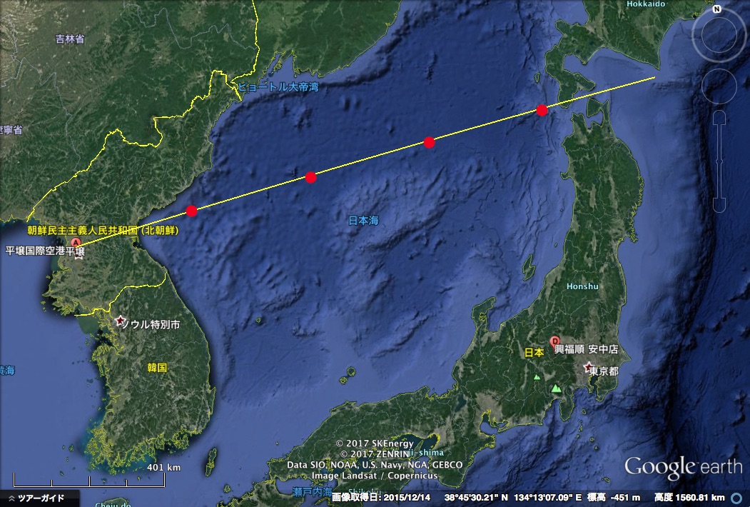 幸い、北朝鮮が発射したミサイルは火星12号だといってくれたので、機種を推定する手間は省けました。発射地点も分かっています。