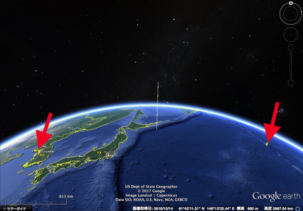 ここから落下しても、日本海の真ん中あたりに落ちることになり、日本の排他的経済水域に入るかどうかという位置でしょう。