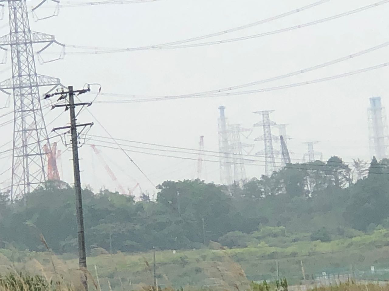 福島第一原子力発電所に最も近い場所、発電所の真西からの写真です。クレーンがあるあたりが発電所(の残骸)です。原子炉までの距離は約1500メートルです。