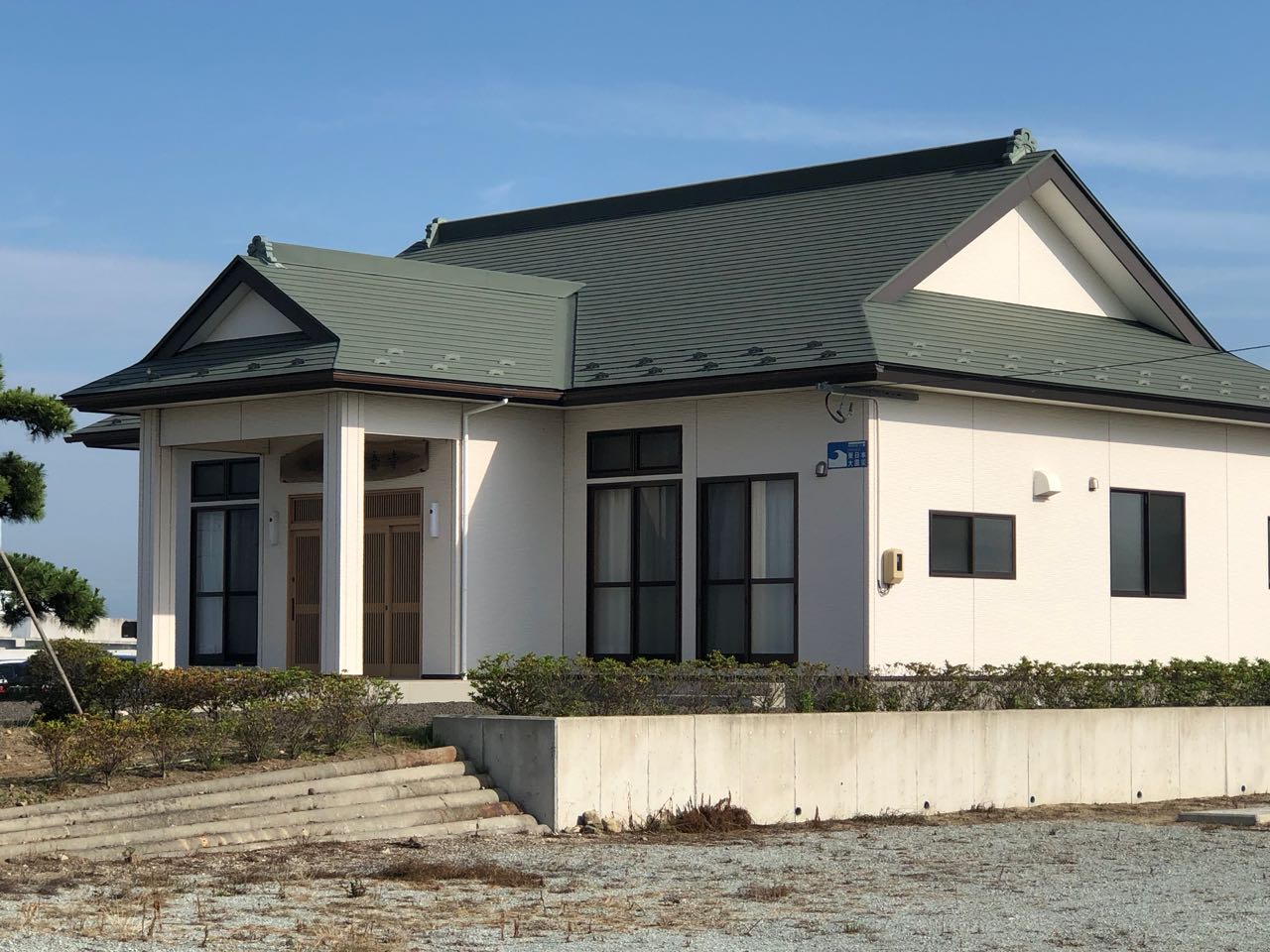 神社の隣には寺がありました。真新しいので新築かと思いましたが、津波の到達を示す表示がありますから、リフォームなのでしょうか。奥にある墓地も真新しく、震災後に設置されたことが分かりました。
