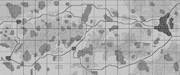 自動車化ライフル銃連隊(BTR)はマップ東端の外側に接した場所にいる。OPFORは1個大隊が前方に、2個大隊が後方に配置されている。連隊の偵察隊はマップ東端を0700頃に通過すると予測される。第1自動車化ライフル銃大隊の先頭は、0708頃にマップ東端を通過すると予測される。第2、第3自動車化ライフル銃大隊は第1大隊の後を約30分遅れて行軍している。 |